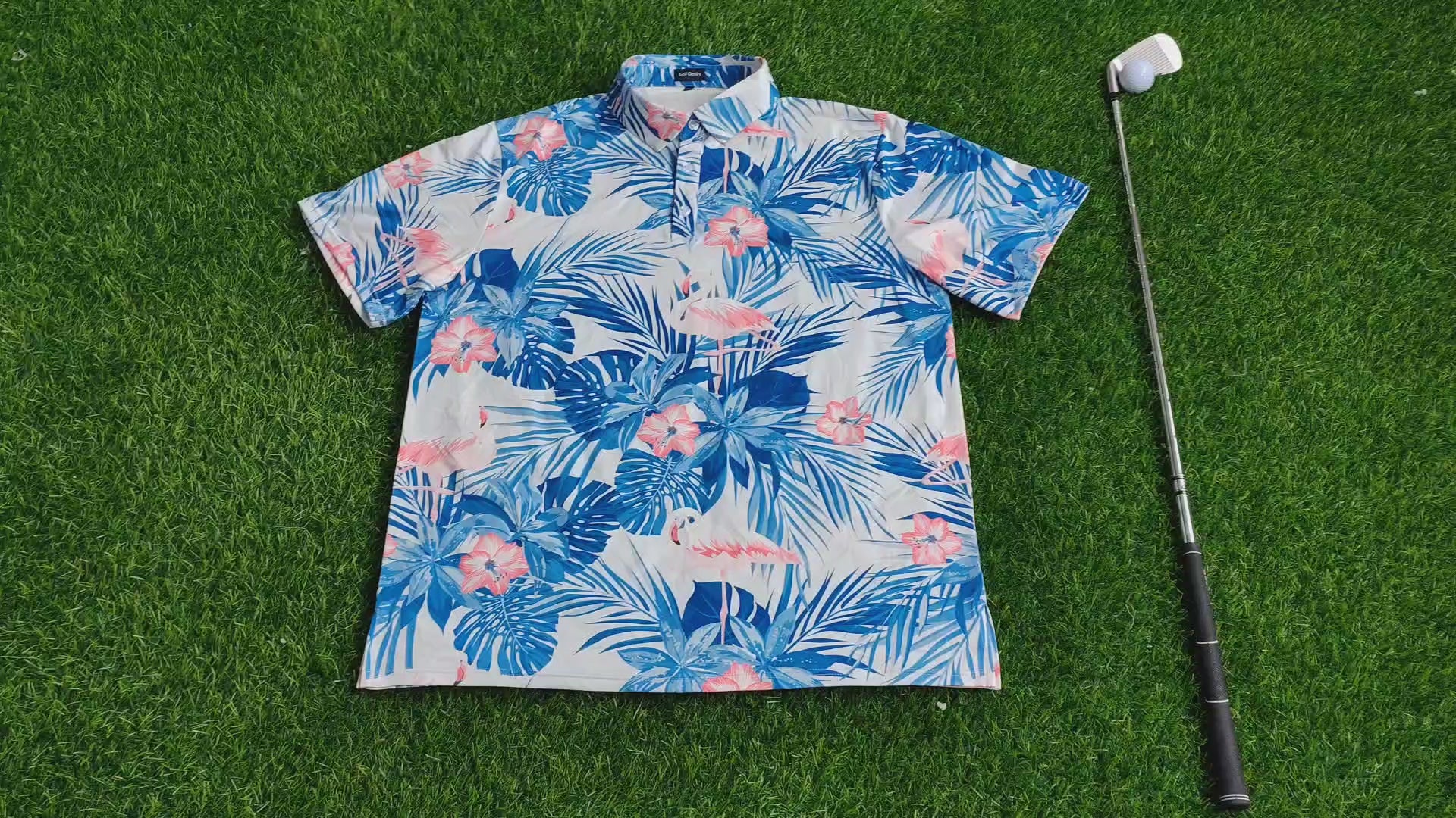Blue leaf flamingo Mens Polo