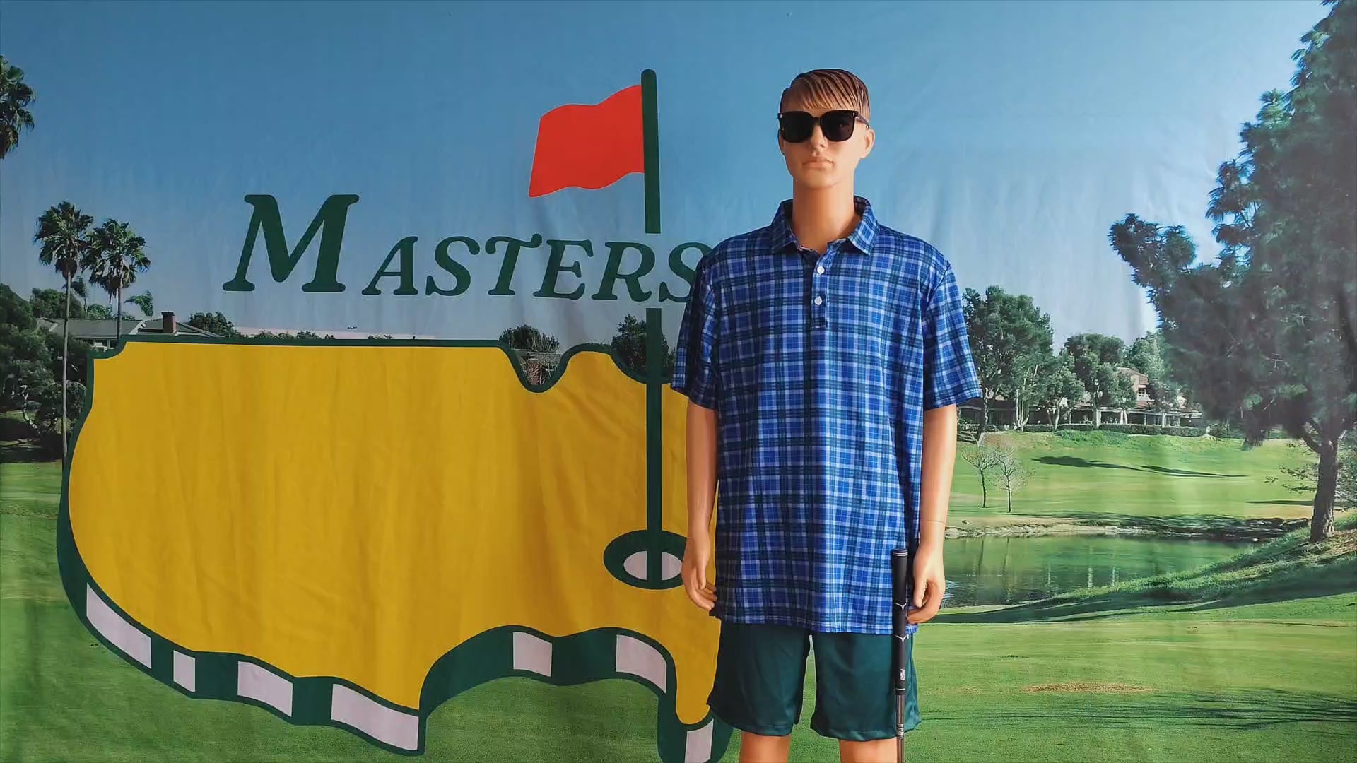 Men's blue grid golf polo